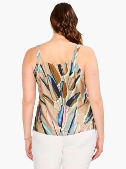 A unique combination of neutrals and bright colors, this professional yet festive top makes outfitting a breeze. Made from our easy and lightweight Satin Chiffon fabric, itÂ’s ready to dress up for work or down: just add denim. Reinforced straps create textural detail in addition to covering up any under layers.
