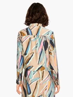 Made from our drapey and super soft Satin Chiffon fabric, we love this top’s ability to do it all: or at least match with just about everything thanks to its unique combination of neutrals and bright tropical shades. We love the cute knot detail that adds some textural pop. With long sleeves, a button front, and a stay flat shirt collar.