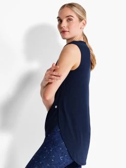 Made from our unique, can’t stop touching it Brushed Flow fabric, this scoop neck tank is unlike anything else in your relaxed rotation. Featuring a midweight feel that provides the perfect balance between cozy and breathable, this round neck sleeveless silhouette is designed to have its shirt tail hem sit slightly below the waist. Cap sleeves add to the uniqueness of the shape.