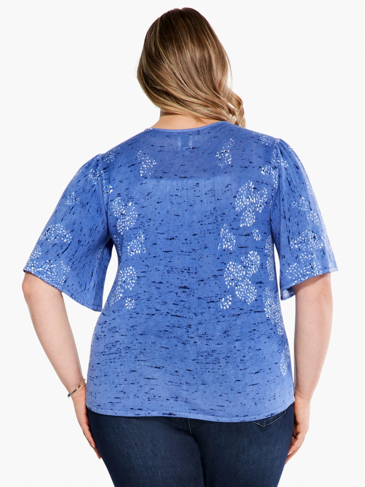 Dive in, in style. This short sleeved, flowy sweater will make you rethink what knitwear can be. With short sleeves, a gentle V-neck and pullover ease. Constructed from a cool, comfortable linen blend with a relaxing ocean-inspired pattern to match. Mindfully Made from fully fashioned knitwear: where each panel is created separately, then joined at the seams, vastly reducing textile waste.