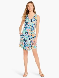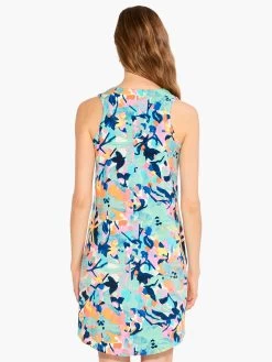 We’re leaning all the way in (or is it standing all the way out?) with on-trend tropical color. This super fun, super colorful dress is the perfect piece for any outdoor event. The seam down the back adds an extra textural detail to the riot of color. We also included some stretch in the weave to make the fit flattering and comfortable. An easy-fitting V-neck pullover silhouette designed to fall slightly above the knee.