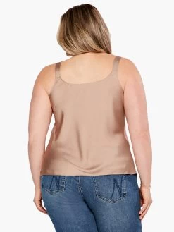 A scoop neck tank with a little bit of sheen, this versatile top is a must-have layer for your dressier looks–but with its lightweight comfort and satiny feel if you want to use it as a pajama top, we won’t tell. With solidly constructed straps that complement the style and a hem that falls at the waist.