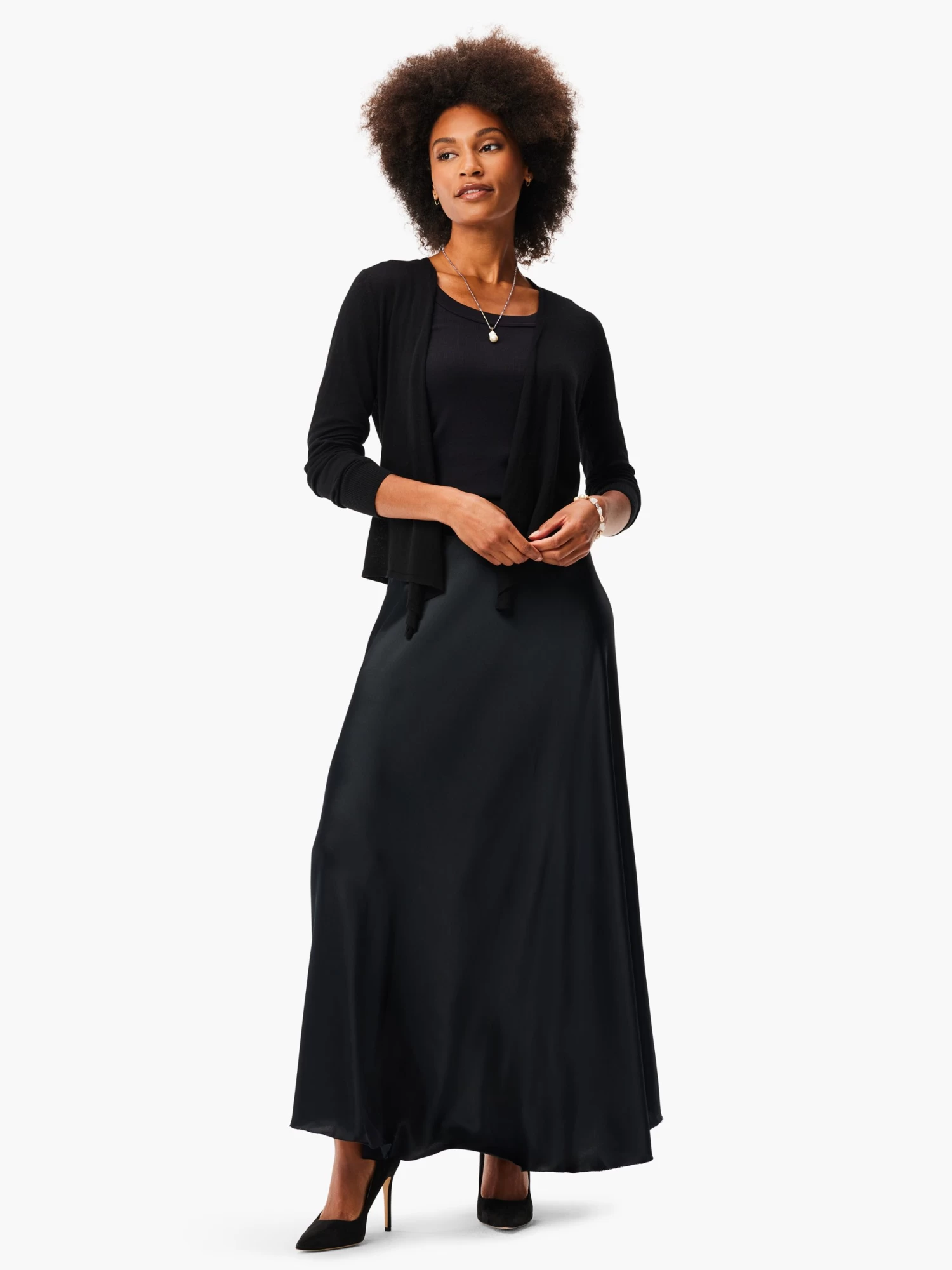 Dramatic, long, sophisticated, elegant: everything you need for polished looks designed for holiday hosting or just anytime you need a look with a little extra polished. We recommend pairing it with the matching Elevated Top for a pulled-together set of elegant neutral, but that’s far from the only way to style it. We also made it extremely wearable, adding pull on ease with a subtle elastic waist detail that makes this effortless A-line as comfortable as it is stunning.
