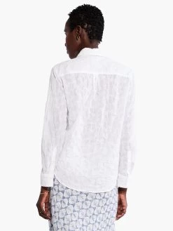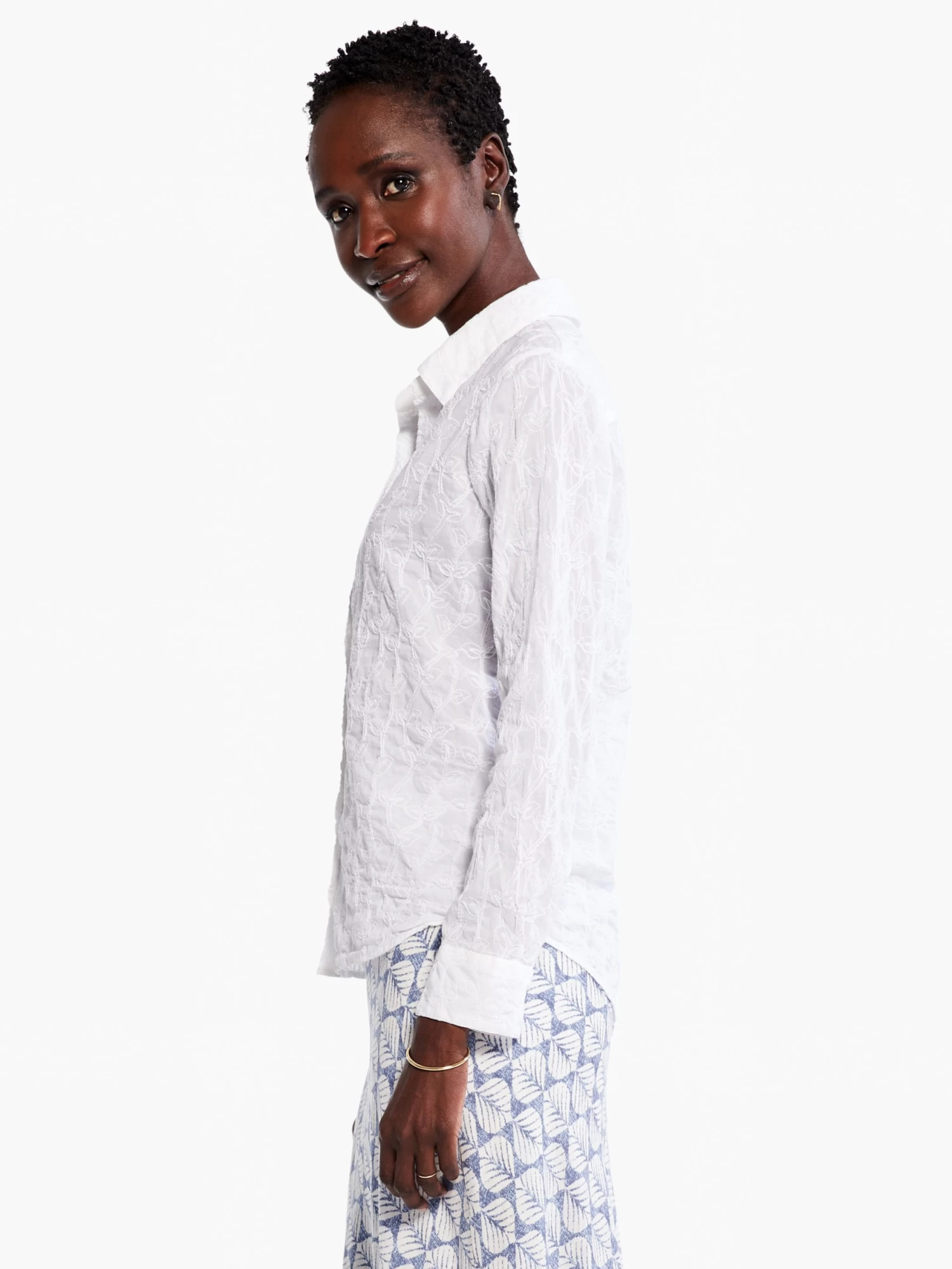 Simply stunning, effortless elevated: this “can’t stop staring” technical marvel features tonally embroidered fabric to create texture and depth while maintaining its monochrome effect. We kept things stylishly simple with a workshirt silhouette featuring a button front, shirt collar, and a longer hem that sits slightly below the hip. Made from 100% cotton.