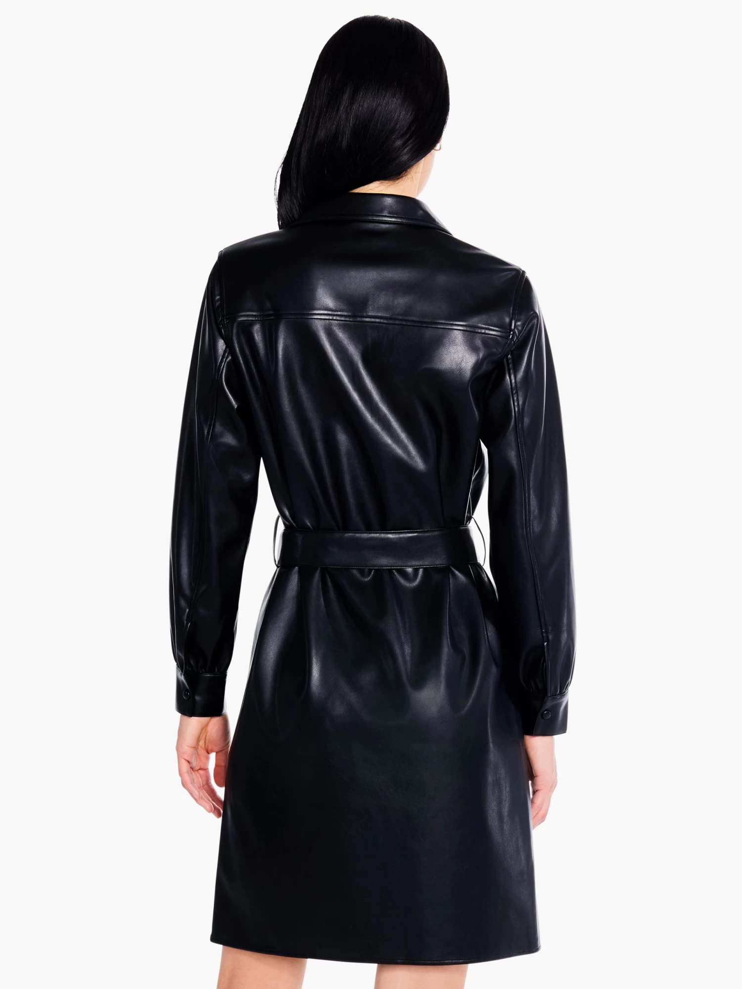 Faux Leather Trench Dress BLACK ONYX