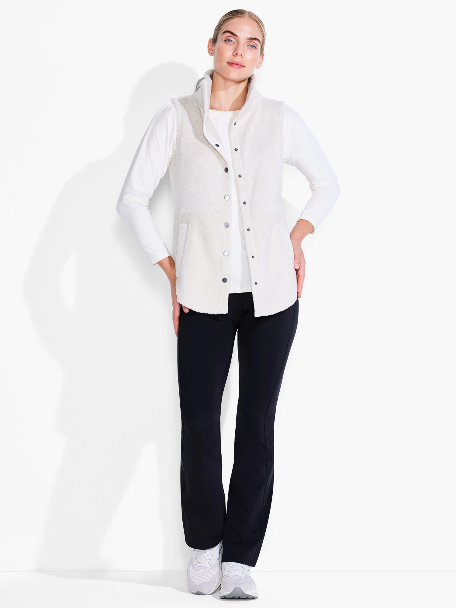 Sometimes all you need is some warmth (and style) right at the core. The Fleece Knit Vest delivers, making it the perfect throw-on for the before and after of all your work outs or as an essential option for casual layering as the temperature begins to drop. The pockets add more functionality. With a sleek yet feminine silhouette, secure snap closures, fashion collar, and a hem that sits at the hip.