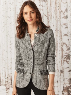 A modern silhouette that’s just as comfortable as your favorite cardi, the Frosty Knit Blazer is an elegant outfitting option that hasn’t lost touch with its cozy side. We gave it a sophisticated stand collar and a button front that buttons all the way to the top, but it looks great when you leave it open too. With a hem that sits slightly below the hip and welt pockets.