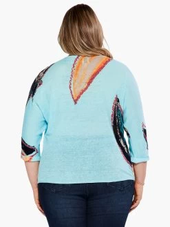 An eye-catching print that speaks to nature and time spent outdoors, printed on top of our feather knit fabric, a super comfortable linen blend. This pullover top featuring a modern, relaxed fit, a widened boat neck, generous dolman sleeves that reach to the elbow, and a hem that sits at the hip.