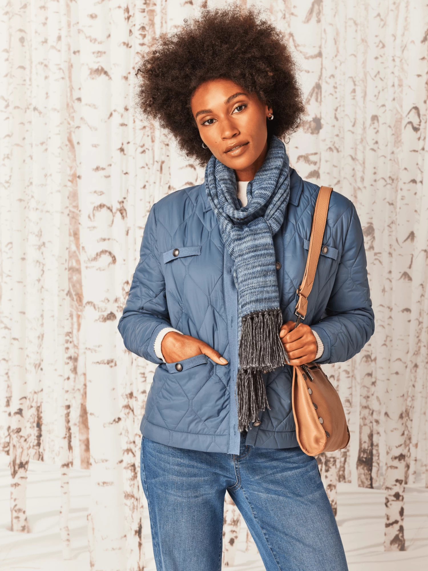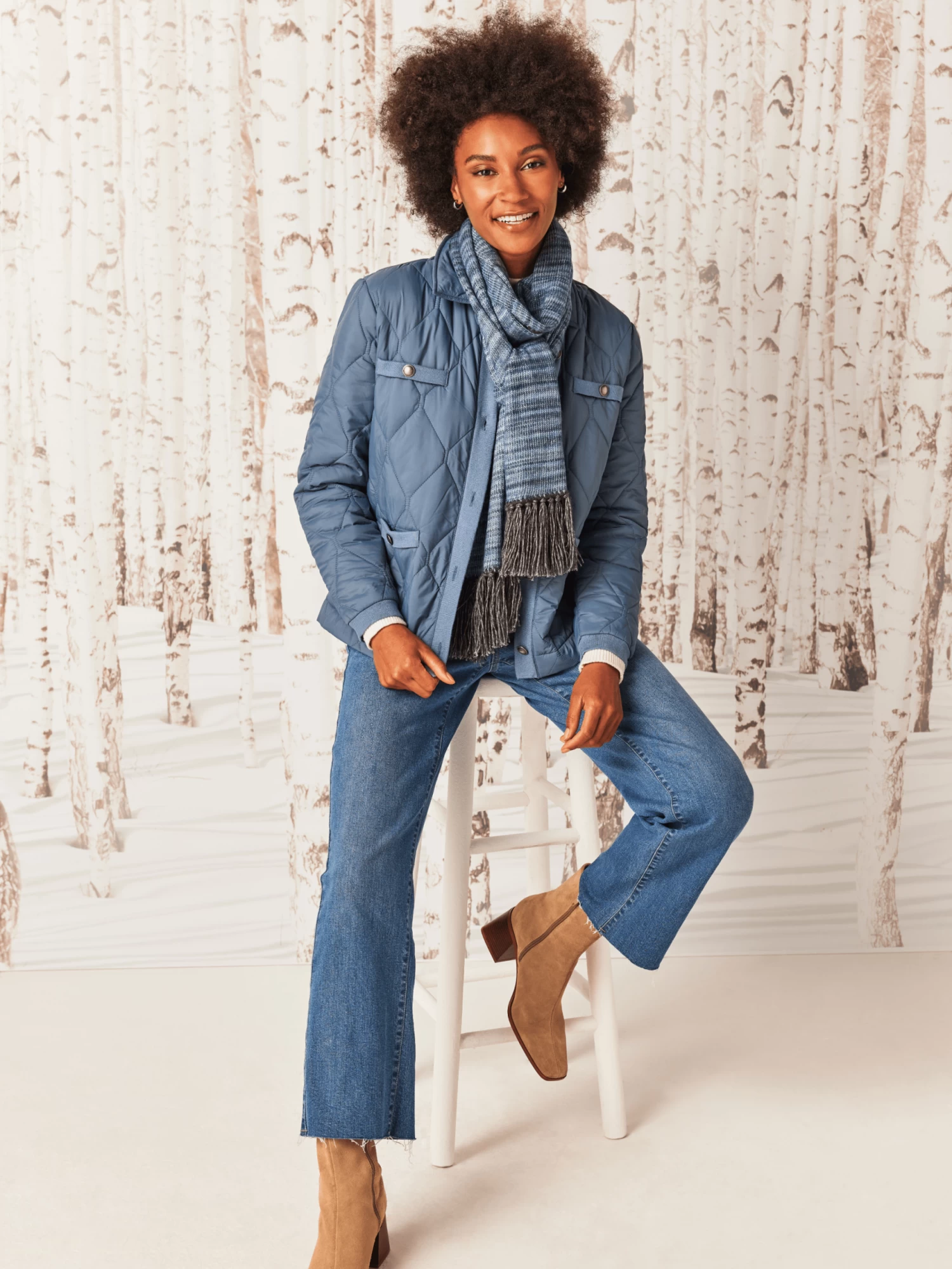 Mixed media, but all the way stylish: this smart layer features knit details (kind of our thing) on an always-in-style quilted puffer body. The weight is super light so it’s easy to pack or wear all day when the temperature starts to dip. Button front closure with metallic shine on the buttons catch the light and elevate the look. The welt pockets add extra functionality.