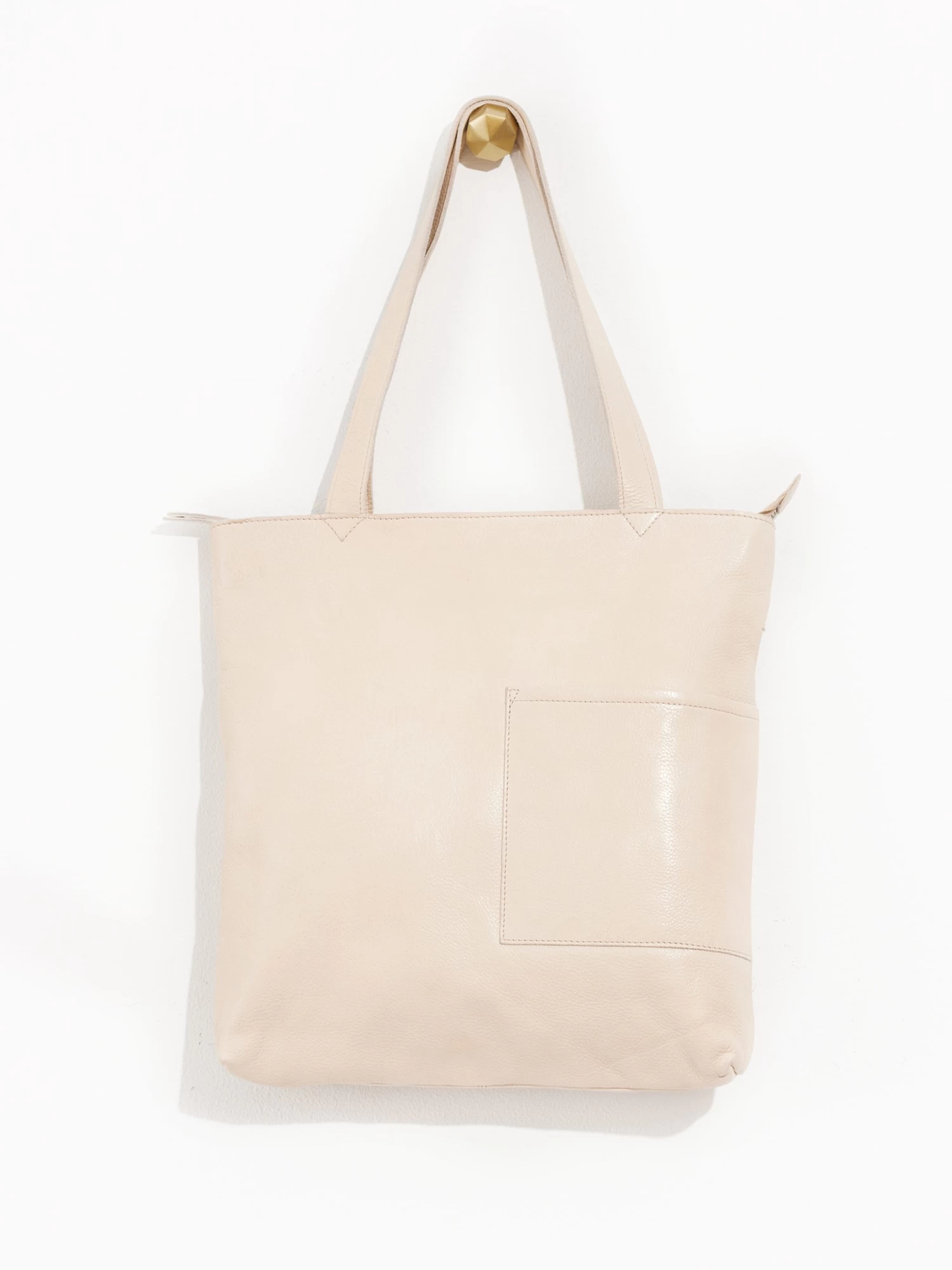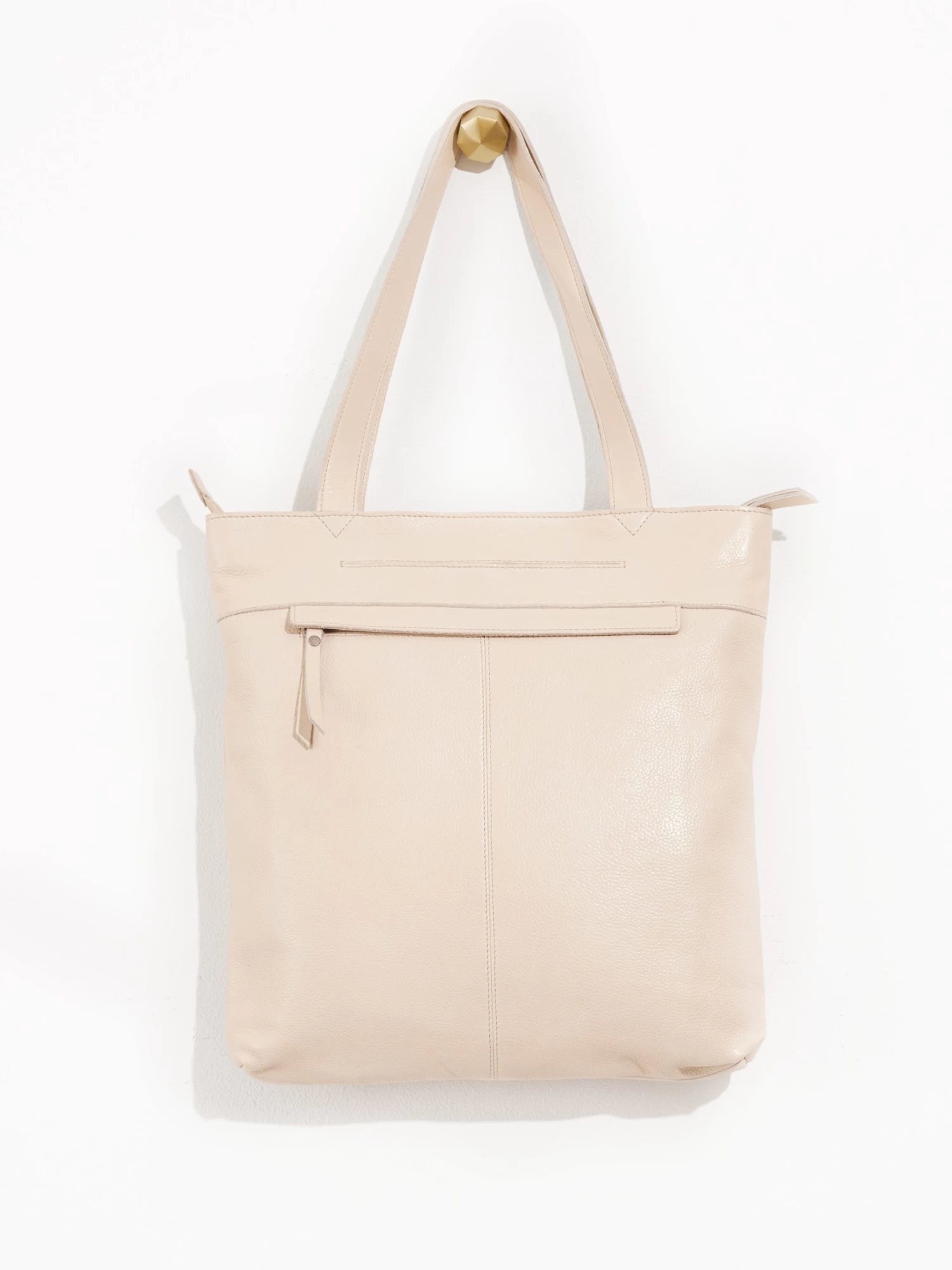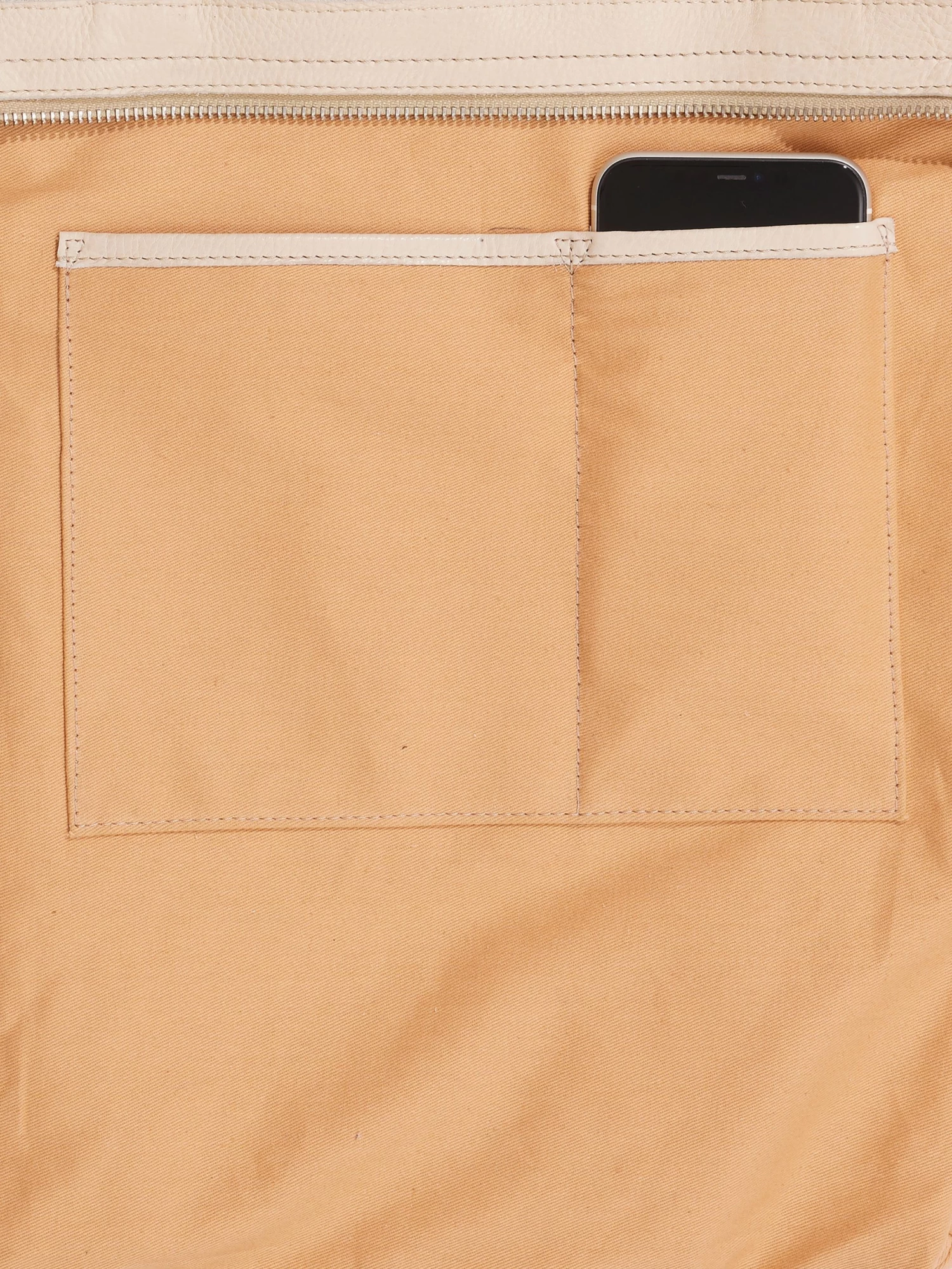 - Recessed top zip entry with leather puller