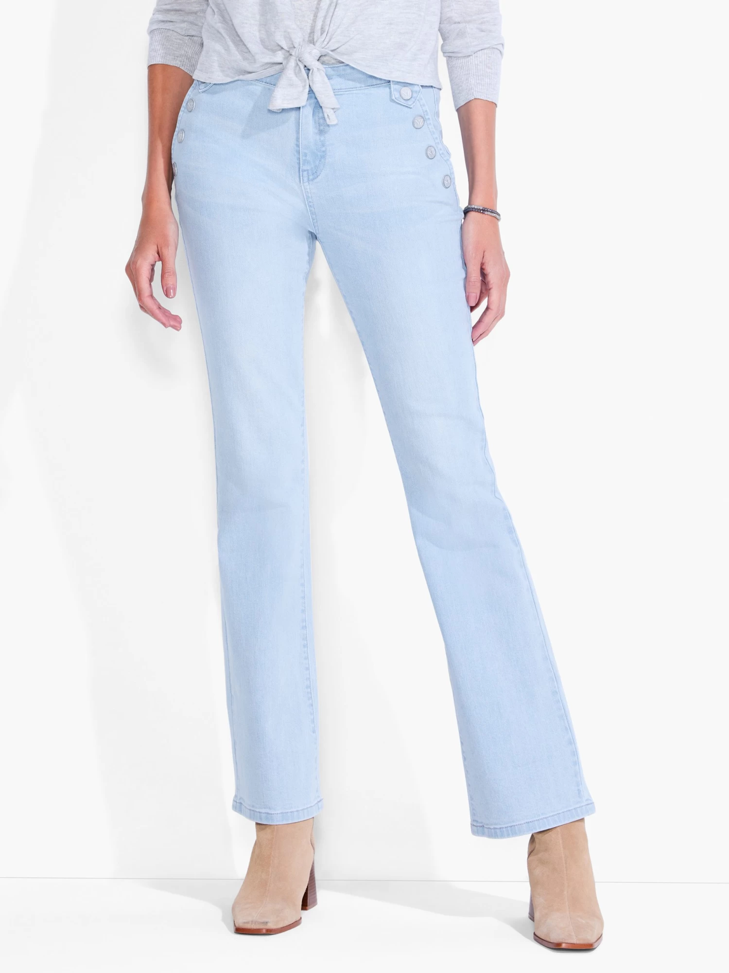 Jean game getting a little stale? Time to give your denim options the boot. Made from our uniquely soft and stretchy denim that feels perfectly broken-in on day one, the Sailor Boot Cut is the stuff denim dreams are made of. The silhouette is full length, sits at the waist, and features a zip fly with a button closure.