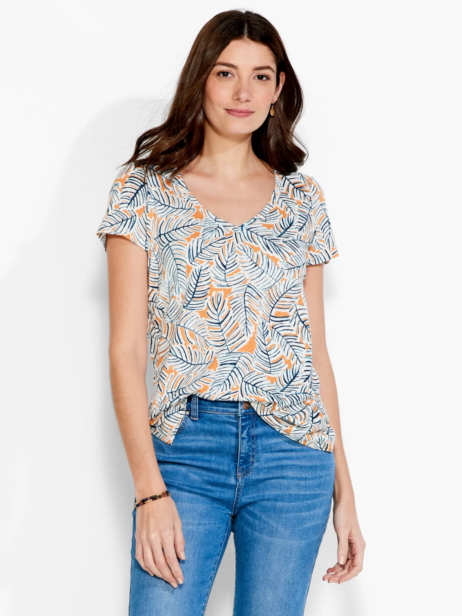 NZT Palm Short Sleeve V Tee ORANGE MULTI