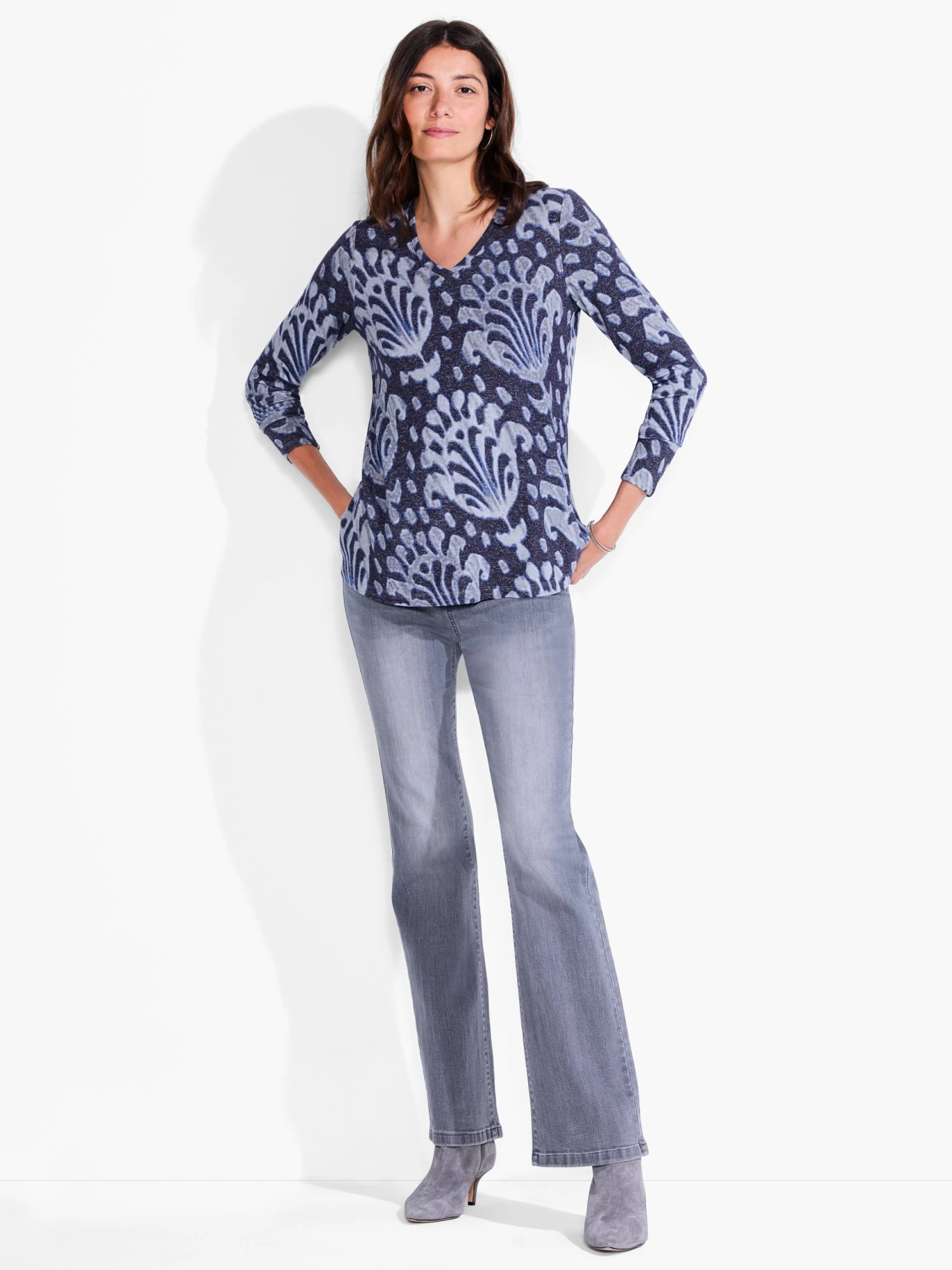 NZT Shadow Florals Long Sleeve V Tee GREY MULTI