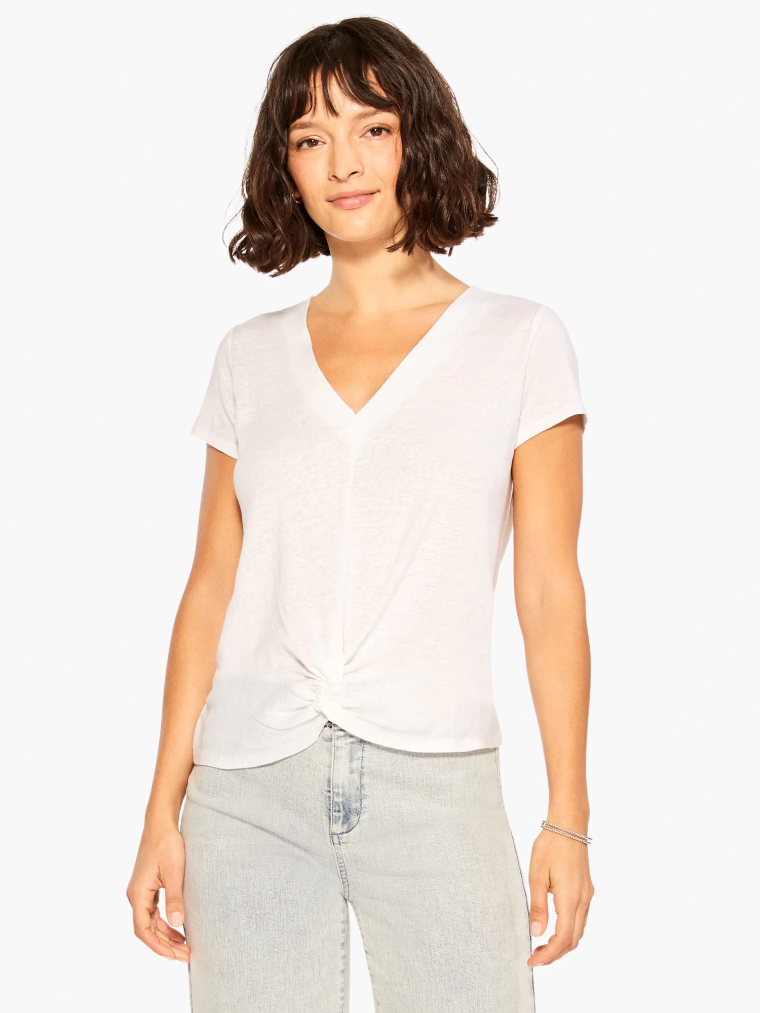 NZT Short Sleeve Knotted V Tee PAPER WHITE