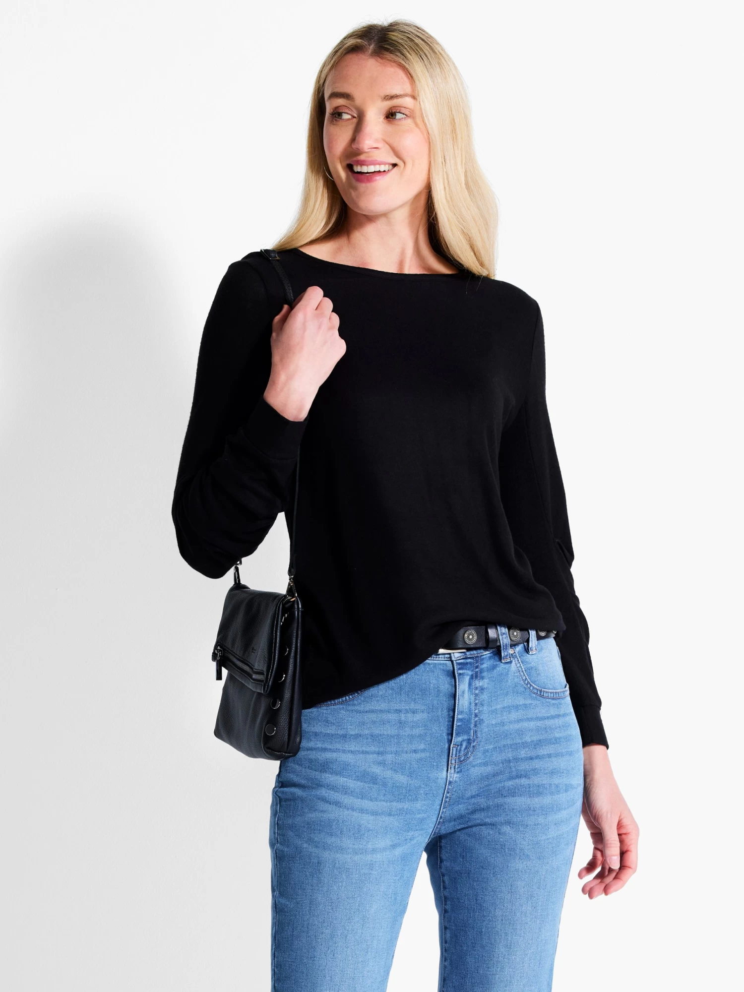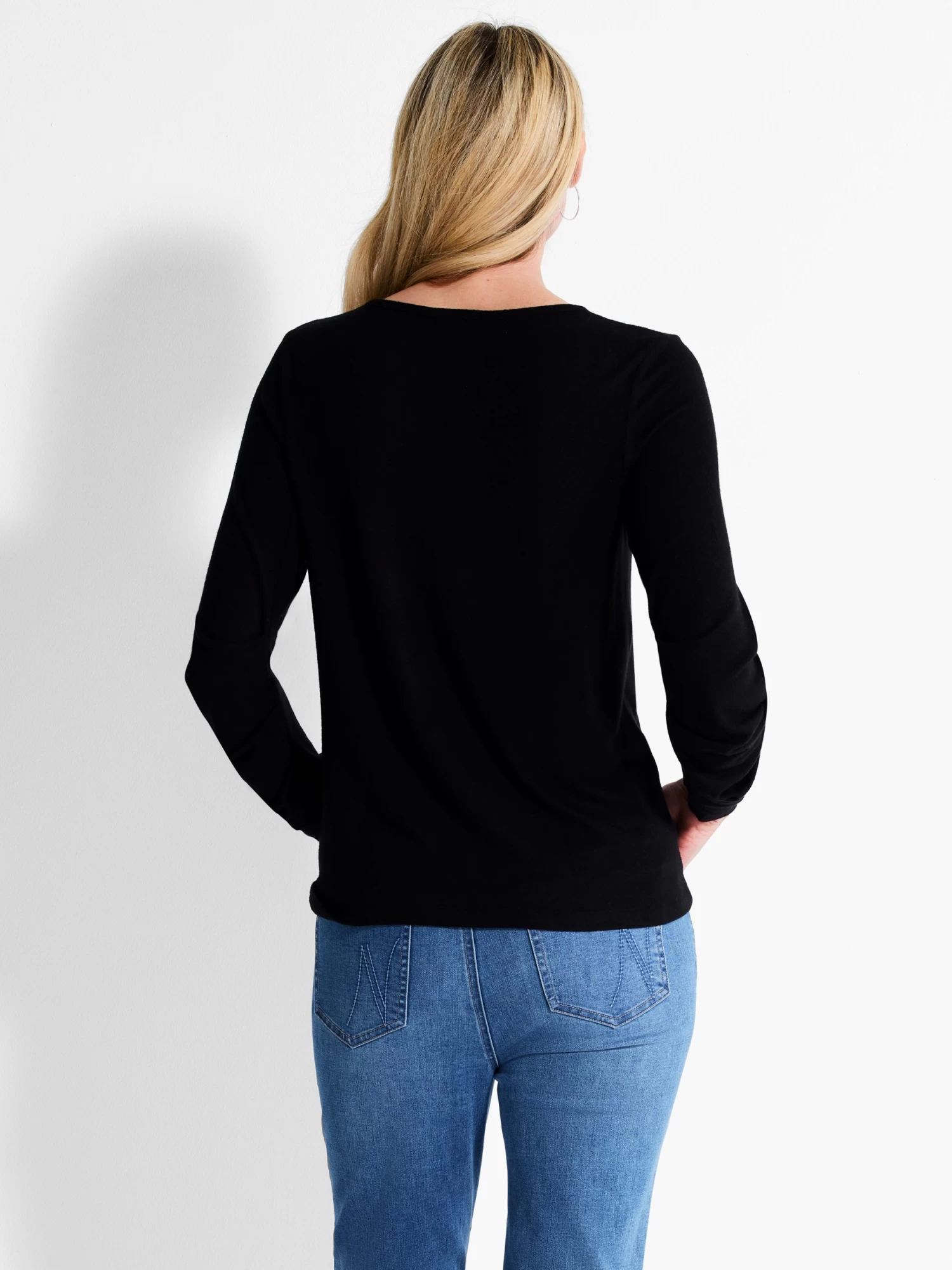 A subtle shift in your long sleeve T-shirt rotation. Made from our incredibly cozy Sweet Dreams fabric, this essential crew neck silhouette features namesake ruching along the sleeve to add an element of texture to the drape of the fabric while remaining layerable and completely unbulky. A regular fitting silhouette that sits at the hip.