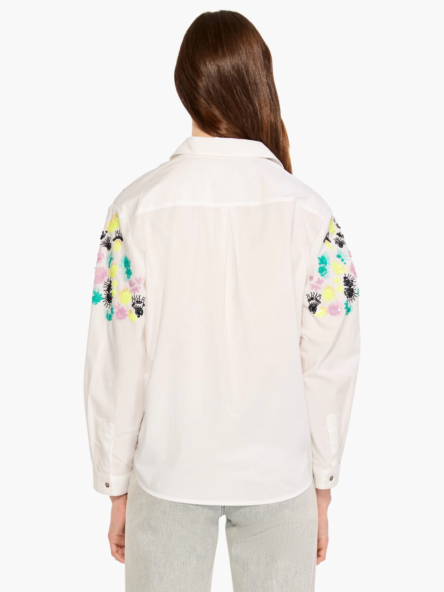 A crisp, clean button front top with a touch of floral accenting: perfect for time spent outdoors. We gave it a looser, more relaxed fit for an on-trend look and comfortable feel: perfect for denim of all washes from elegant white to deep indigo. Made from 97% cotton with just a touch of stretch added.