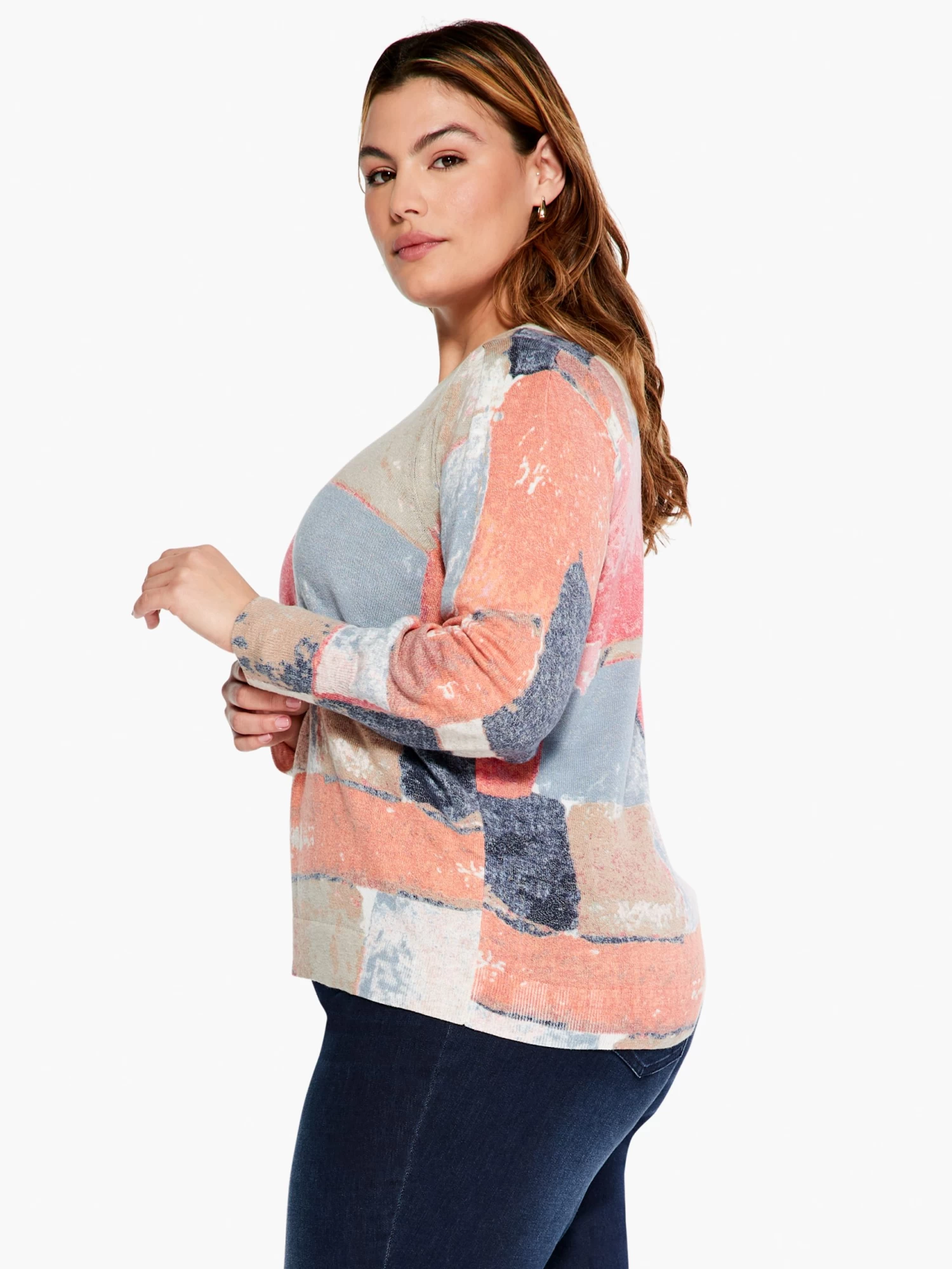 Add some color (ok, lots of colors) to your everyday sweater rotation with this vivid sunrise-inspired print: the perfect mixture of the organic and the geometric. A midweight, pullover construction that sits at the hip with pleated detail at the sleeve. Mindfully Made from “no waste” knitwear that’s crafted to shape, then sewn together in a process that reduces textile waste.