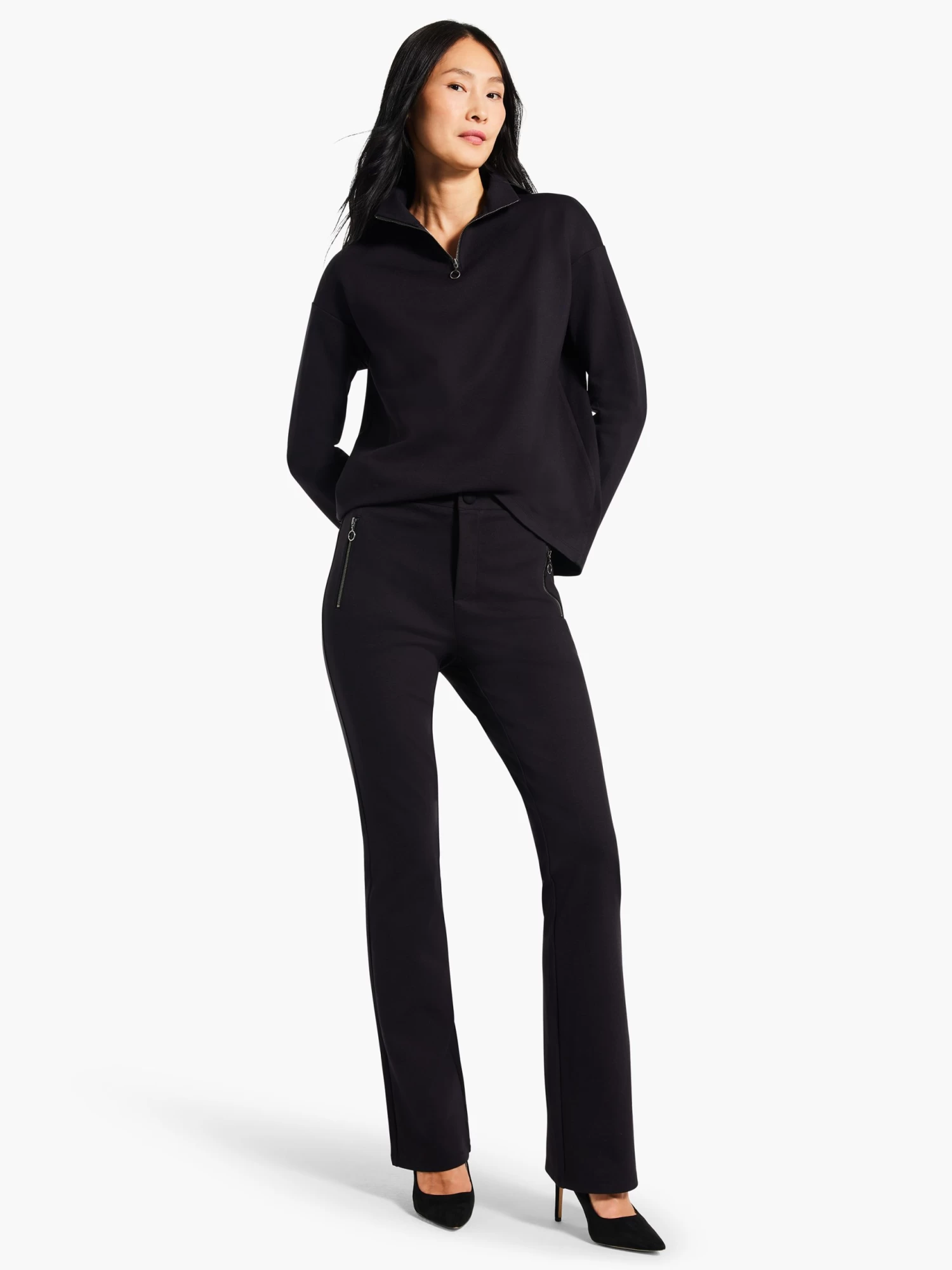 Don’t you love when your tops works as hard as you do? This dressy-yet-easy top is front to back reversible: a versatile layer that offers flexibility to your wardrobe. The Ponte Fabric is new and features the heavier weight that’s soft and comfortable but also cozy enough for the coldest months of the year. The mock neck with zipper adds a technical. Designed to have a more retro fit with a little bit of drape and swing.