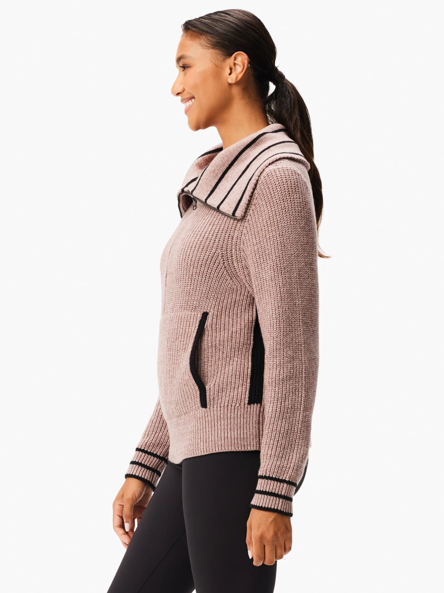 Wearing it to and from the gym or just out on a coffee run, the sporty look and all-day comfort of this zip front sweater moves it to the front of our casual wardrobe. The effortless pullover silhouette features a half zipper plus a kangaroo pocket for your valuables and/or cold hands. The fit is relaxed with a basic sleeve and a hem that sits at the hip.