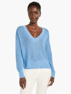 When the material looks (and feels!) this good, a little goes a long way. With its on-trend short silhouette, this light and airy shaker knit stitch in our breathable linen cotton, modal, blend is a must-have modern knit. We gave it a lightweight pullover fit with a statement-making V-neck, dropped shoulder, and a relaxed fit. The absoulte perfect pairing with denim. Mindfully Made from our no waste knitwear.
