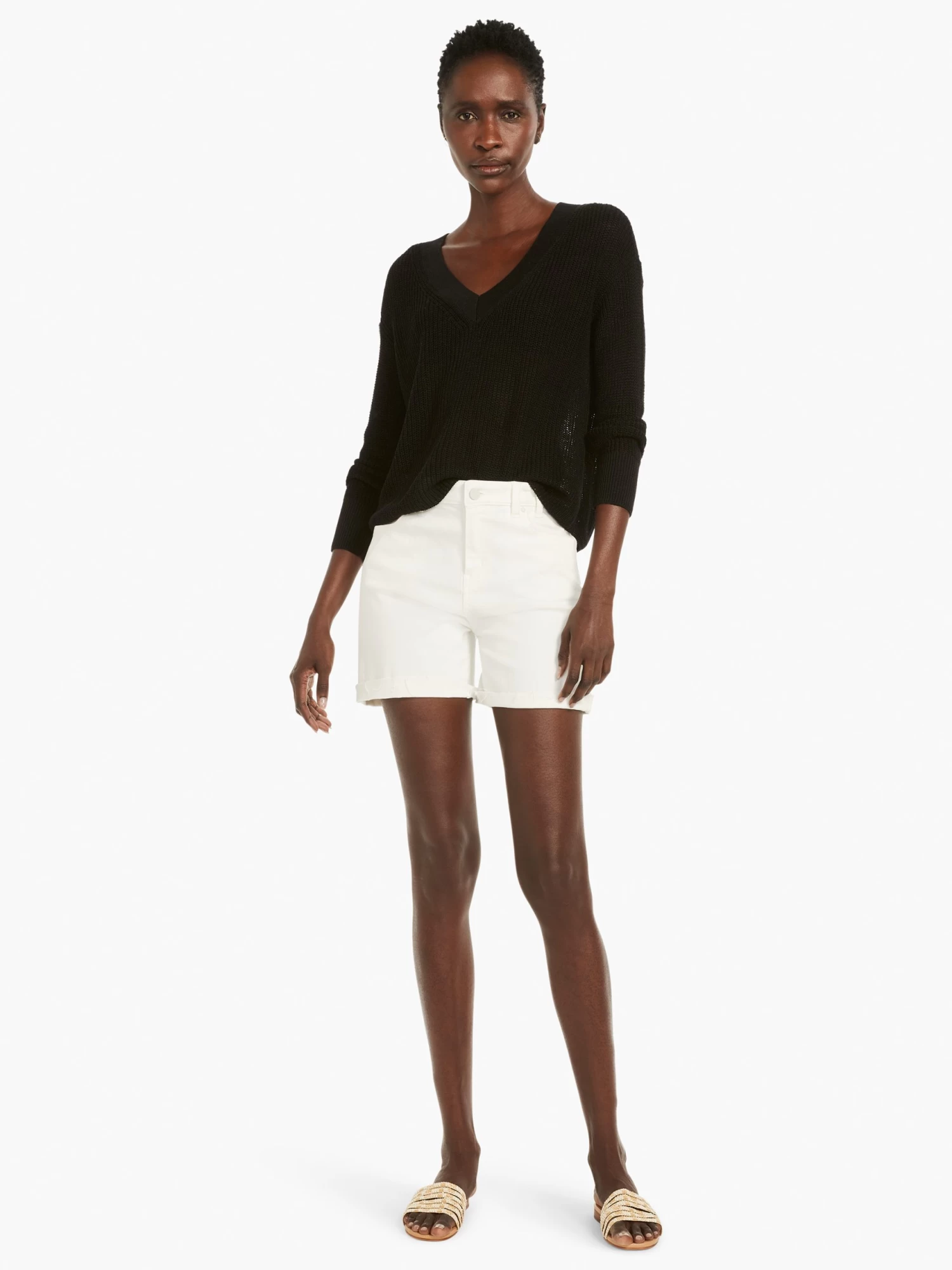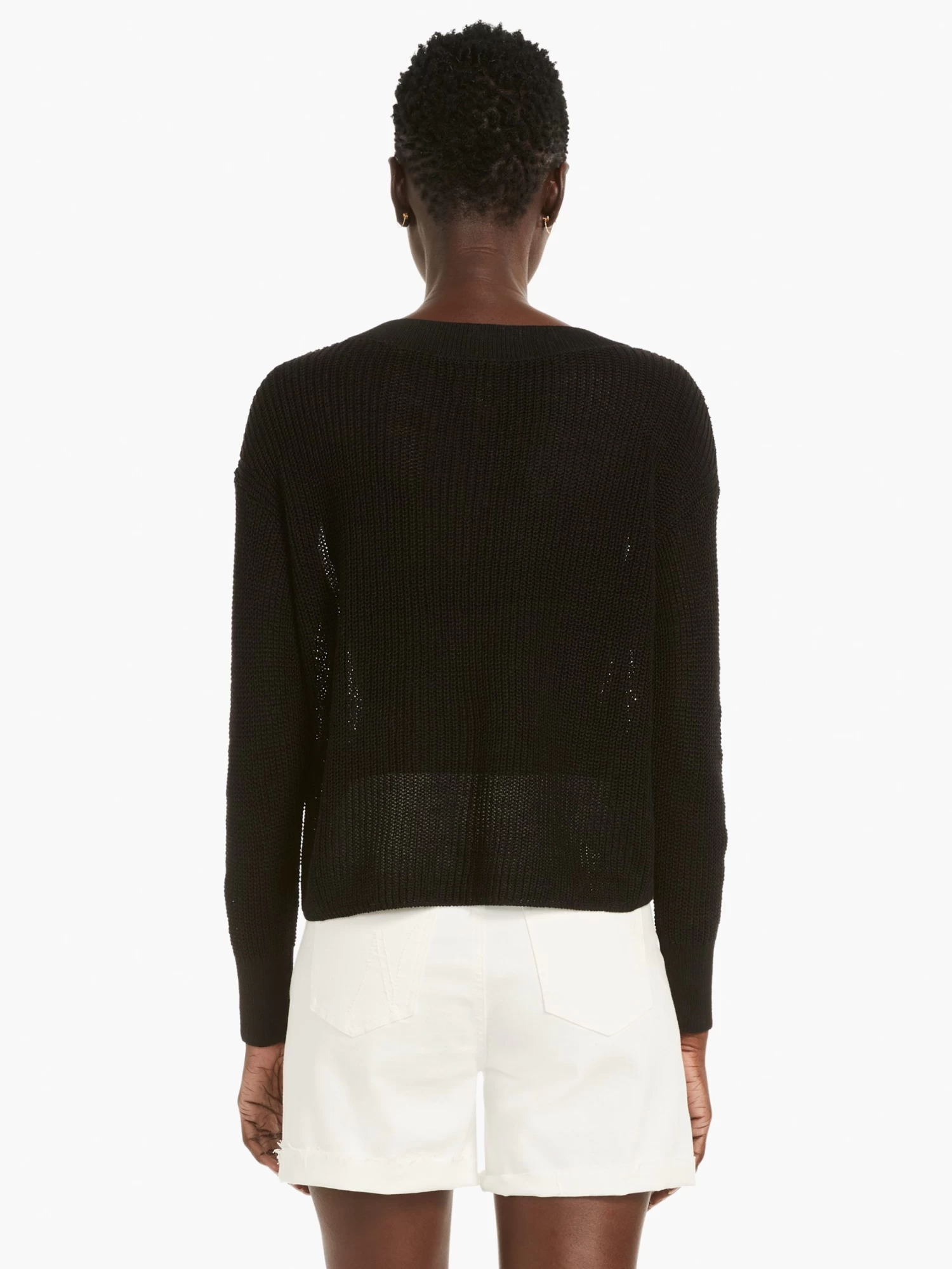 When the material looks (and feels!) this good, a little goes a long way. With its on-trend short silhouette, this light and airy shaker knit stitch in our breathable linen cotton, modal, blend is a must-have modern knit. We gave it a lightweight pullover fit with a statement-making V-neck, dropped shoulder, and a relaxed fit. The absoulte perfect pairing with denim. Mindfully Made from our no waste knitwear.