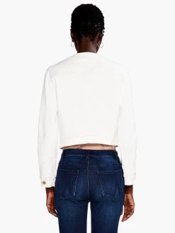 An on-trend cropped denim jacket that’s the perfect finisher for your next smart casual look. With flap pockets for functionality and a button up front with oversized buttons that add accents to the look. The long sleeves feature a band of extra texture at the cuff. The flat band collar offers layering options, especially with a collared shirt underneath.