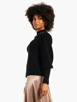 The sun may be setting, but your fun has only just begun. Designed with entertaining in mind, this solid block of color relies on its details to make the difference: details like the extra-long cuff, the mock neck rib collar with placed beads that draw the eye, and the pleated gathering at the top of the sleeve. A midweight fit with a hem that sits at the hip.